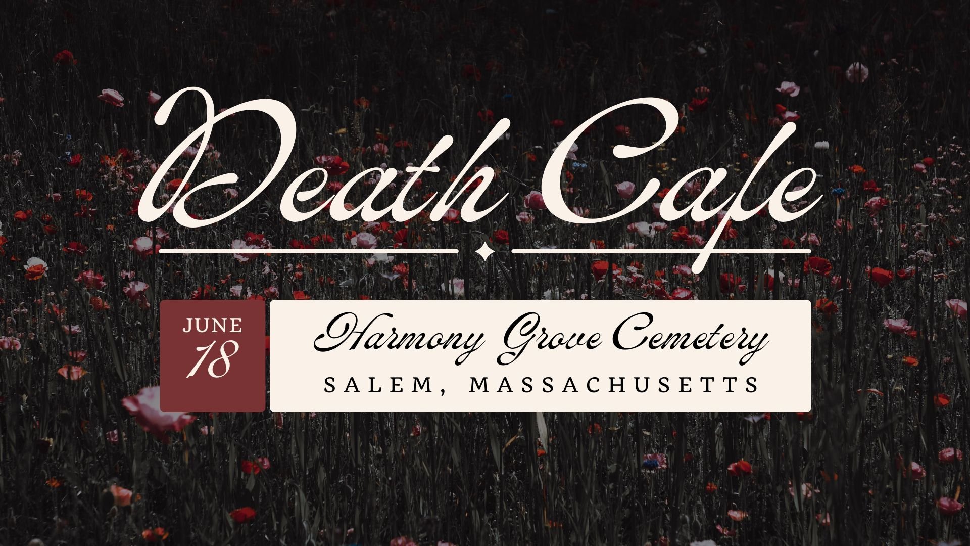 Join us at Harmony Grove Cemetery on Thursday evening, June 18th, for an evening of organic conversation about death and dying. The agenda is that there is no agenda! I will share guided prompts to help us get into the flow, and it will evolve from there. As a socially shy extrovert, I work really hard to include everyone in the conversation and help people feel as welcome as I’d want to be in a new space, especially when discussing potentially sensitive topics. I hope you can join us!